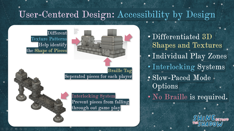 Our game support both slow and fast-paced mode for thoughtful and competitive play. They’re easy to learn, fun to play, and best of all – no Braille is needed.